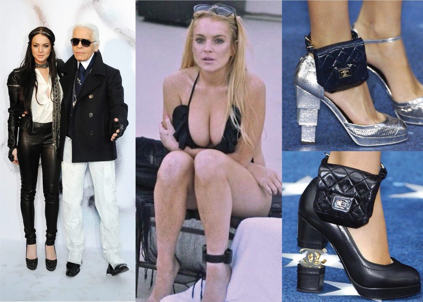 Chanel Ankle Bracelet Bag. Though not officially stated, this bag was inspired by the SCRAM ankle bracelet worn by Karl’s bestie Lindsay Lohan in the early aughts.